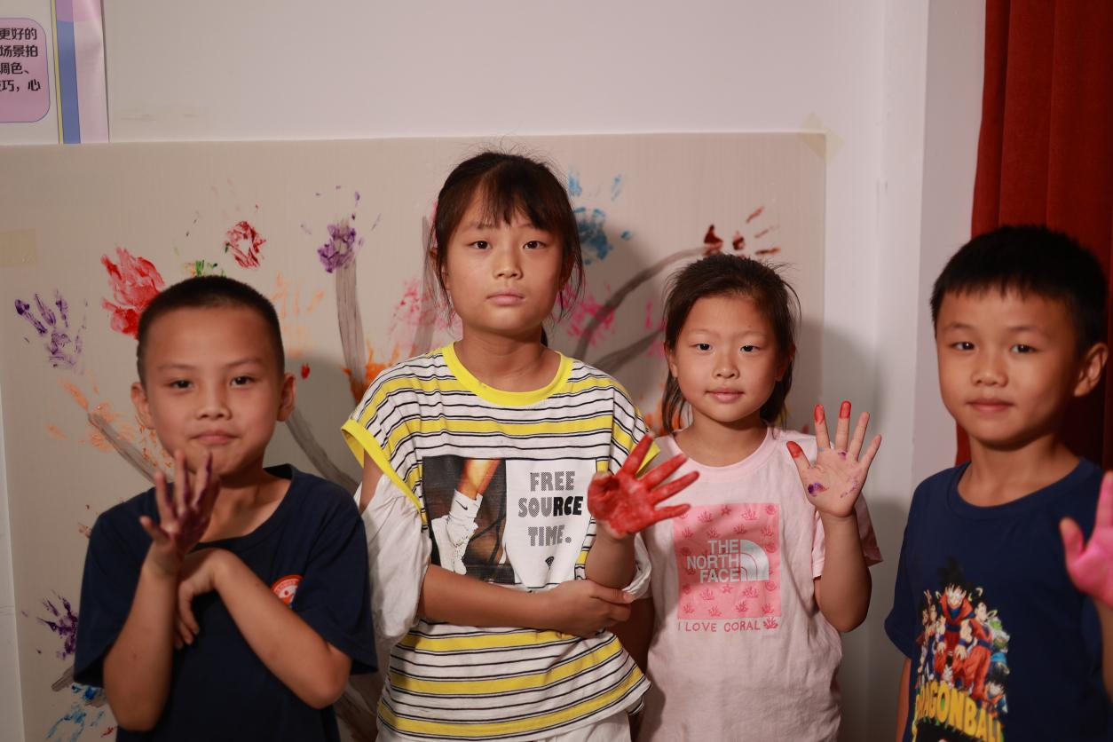 长沙市雨花区同升街道仙姑岭社区的小朋友们手绘创作“禁毒树”。