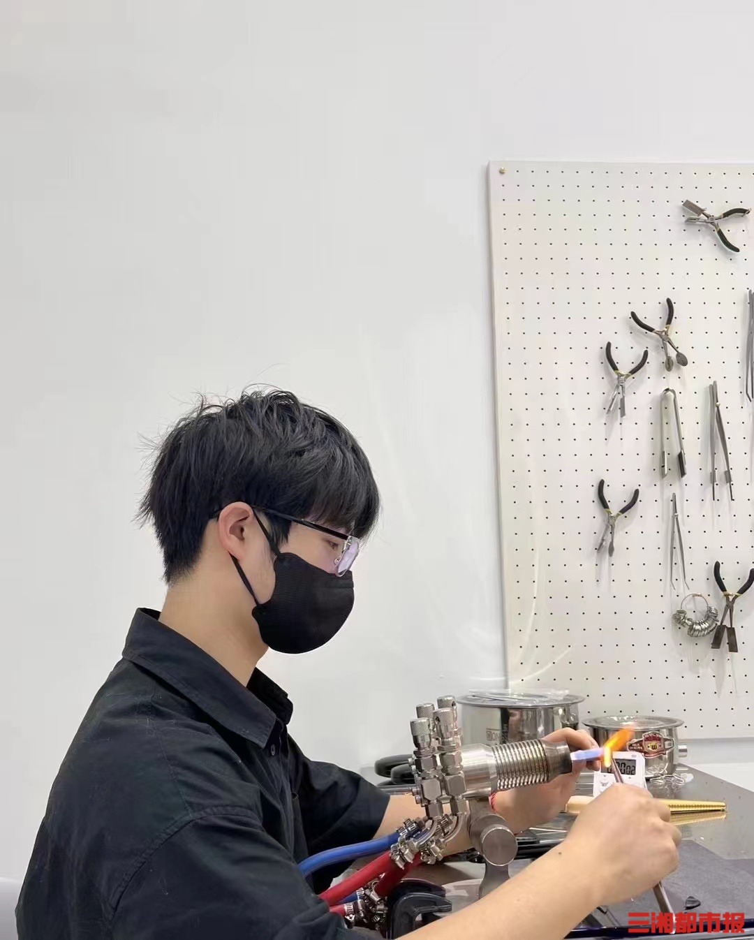 灯工是通过气体燃烧的火焰高温加热已准备好的玻璃管或玻璃棒,再用钳子等工具使之塑形的一种工艺,灯工玻璃在我国也被称为“料器”,是国家级非遗项目。为了学习好这项在外人看来有些冷门的技艺,何洋翻遍所有网络平台的学习视频。