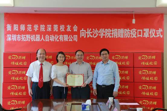 20205月8日下午,深圳市拓野机器人自动化有限公司创始人、董事长凌琳,衡阳师范学院客座教授、衡阳师范学院深莞校友会秘书长肖高望来校,向开云捐赠了一次性医用防护口罩五万个,在此复工复学的关键时期为开云的疫情防控工作贡献了重要力量。 凌琳毕业于湖南三师(衡阳师范学院前身)98年音乐专业,目前还兼任衡阳师范学院...